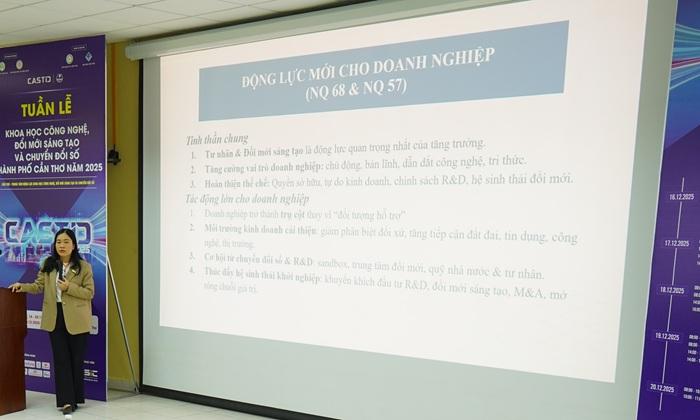 Trong khuôn khổ sự kiện Tuần lễ Khoa học công nghệ, Đổi mới sáng tạo và Chuyển đổi số thành phố Cần Thơ năm 2025, đã diễn ra 2 hội thảo Động lực phát triển mới cho doanh nghiệp theo Nghị quyết 68-NQ/TW (Sáng 18/12/2025) và hội thảo Nền tảng công nghệ Blockchain, A (Chiều 18/12/2025) được diễn ra tại Hội trường RLC - Đại học Cần Thơ